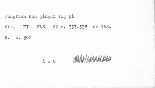 //// Jungfrun hon gångar sig på //// 6:4. Kl SLS 82 s. 337-338 nr 168. //// N. s. 302 //// ÅBO //// < ////