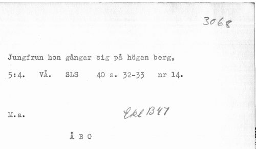 //// Jungfrun hon gångar sig på högan berg, //// 5:4. VA. SLS 40 s. 32-33 nr 14. //// M.a. //// A B 0 ////