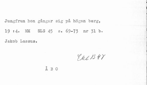 //// Jungfrun hon gångar sig på högan berg, //// 19 :4. MM SLS 45 s. 69-73 nr 31 b. //// Jakob Las sus. ////
