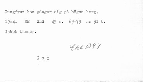 //// Jungfrun hon gångar sig på högan berg, //// 19:4. MM SLS 45 s. 69-73 31 b. //// Jakob Lassus. //// ÅBO ////