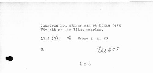 //// Jungfrun hon gångar sig på högan berg //// För att se sig litet omkring. //// 15:4 (3). VÅ Brage 2 nr 20 ////
