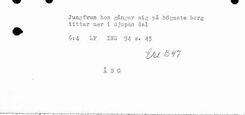//// Jungfrun hon gångar sig på högaste berg //// tittar ner i djupan dal //// 6:4 LF INE 94 s. 43 //// ÅBO //// t ////