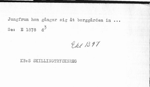 //// Jungfrun hon gångar sig åt borggården in ... //// Se: E 1878 d" //// KB:S SKILLINGTRYCKSREG ////