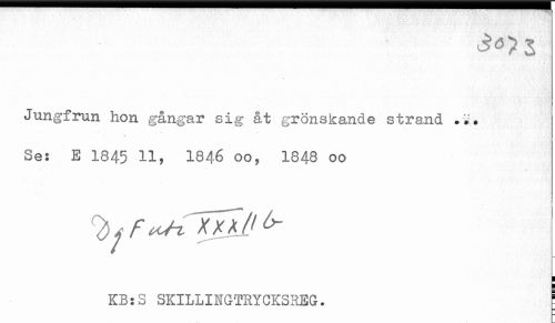 //// Jungfrun hon gångar sig åt grönskande strand ... //// \ //// Se: E 1845 H, 1846 oo, 1848 oo //// KB:S SKILLINGTRYCKSREG. ////