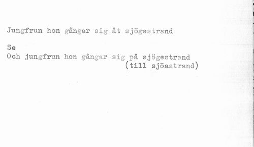 //// Jungfrun hon gångar sig åt sjögestrand //// Se //// Och jungfrun hon gångar sig på sjögestrand //// (till sjöastrand) ////