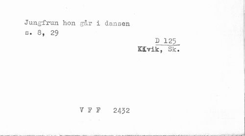 //// Jungfrun hon går i dansen //// s. 8, 29 //// D 125_ //// KXvik, Sk. //// V F F 2432 ////
