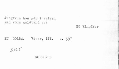 //// Jungfrun hon g&r i valsen //// med röda guldband ... //// Sö Vingåker //// EU 20184. Visor, III. s. 397 //// i //// NORD MUS ////