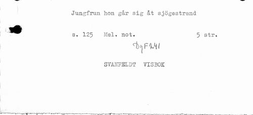 //// Jungfrun hon gar sig åt sjögestrand //// ^^ s. 125 Hel. not. 5 str. //// SVAHFELDT VISBOK ////