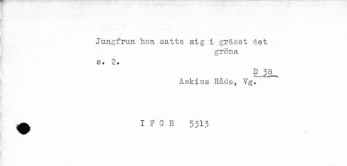 //// ! //// *-- —. \ ^ - — — — ^ < ^ , .. //// Jungfrun hon satte sig i gräset det //// gröna //// i' //// s. 2. //// D 36^ //// Askims Råda, Vg. //// * //// ^ I F G H 5313 ////