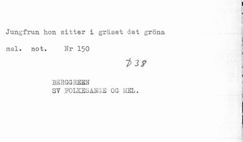 //// Jungfrun hon sitter i gräset det gröna //// mel. not. Nr 150 //// BERGGREEN //// SV FOLKESANGE OG MEL. ////