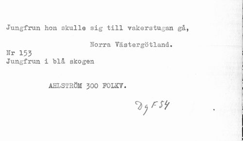 //// Jungfrun hon skulle sig till vakerstugan gå, //// Norra Västergötland. //// Nr 153 //// Jungfrun i blå skogen //// AELSTRON 300 FOLKV. ////