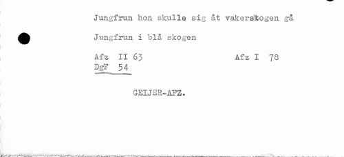 //// Jungfrun hon skulle sig åt vakersSiogen gå //// ^^ Jungfrun i blå skogen //// I //// Afz II 63 Afz I 78 //// DgF 54 //// GEIJER-AFZ. ////