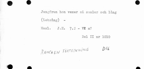 //// Jungfrun hon vexer så småler och lång //// (Leksång) //// Maal* J.H. 7.2 - W m? //// Del II nr 1010 ////