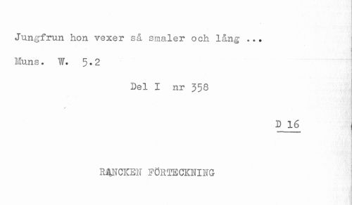 //// Jungfrun hon vexer så småler och lång ... //// * //// ' - < ' i //// Muns. W. 5.2 //// Del I nr 358 //// D 16 //// ROCKEN FÖRTECKNING ////