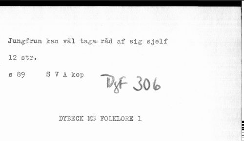 //// Jungfrun kan väl taga råd af sig sjelf //// 12 str. //// s 89 SVA koD ^ //// DYBECK HS FOLKLORE 1 ////
