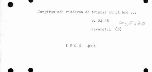 //// Jungfrun och riddaren de trippar ut på bro ... //// s. 24* 26 1, ,. //// I - ^ ^ ^^ //// Näverstad (B) //// I F G E 4004 //// ! ////