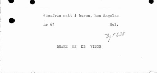 //// Jungfrun satt i buren, hon ängslas //// ^^ nr 63 Hel. //// DRAKE MS KB VISOR //// < ////