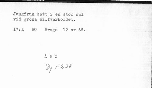 //// - //// - //// Jungfrun satt i en stor sal //// vid gröna silfverbordet. //// - i //// 17:4 BO Brage 12 nr 68. //// o //// A B 0 //// A ////