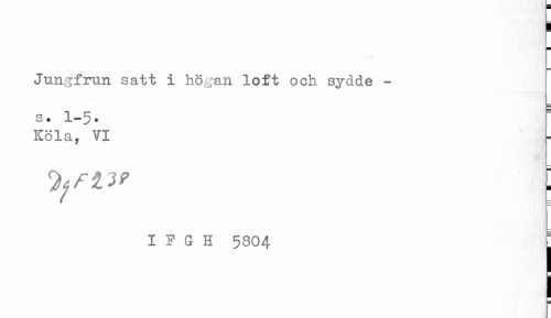 //// Jungfrun satt i högan loft och sydde - //// s. 1-5. ' //// Köla, VI //// I F G H 5804 j ////