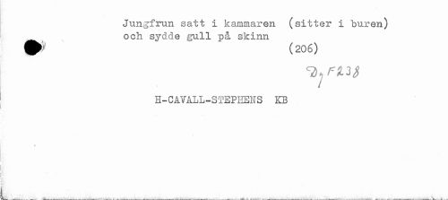 //// Jungfrun satt i kammaren (sitter i buren) //// ^^ och sydde gull på skinn //// I H-CAVALL-STEPEENS KB //// t . //// i //// i . ,. _ ^^ ////
