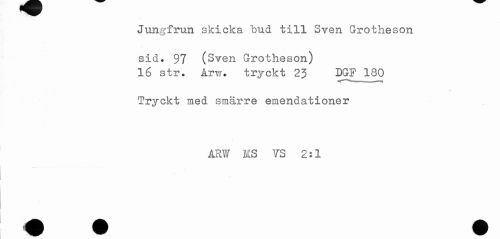//// Jungfrun skicka bud till Sven Grotheson //// sid. 97 (Sven Grotheson) //// 16 str. Årw. tryckt 23 DGF^ISO //// Tryckt med smärre emendationer //// ARW MS VS 2:1 //// ! ////