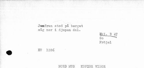 //// ' ' ' //// Jomfrun stod på berget //// såg ner i djupan dal. //// Ekl. B47 //// Go //// Fröjel //// ^ EU 1286 //// imRB WTTS IfdPTOP VTf^nP ////