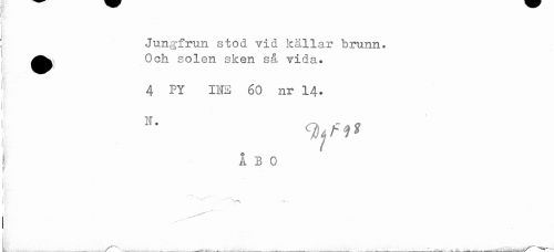 //// 1 //// : //// Jungfrun stod vid kallar brunn. //// ^^ Och solon sken så vida. //// 4 PY INE 60 nr 14- //// i' ÅBO //// y //// ^ * - - ////