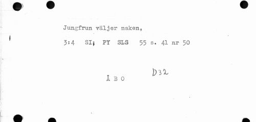 //// ' ' ' - - - * t //// Jungfrun väljer maken, //// # . - - — //// ^ 3:4 SI; PY SLS 55 s. 41 nr 50 //// ÅBO ////