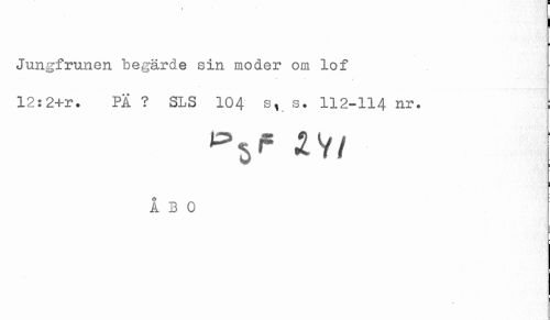 //// i //// Jungfrunen begärde sin moder om lof //// * * < //// 12:2+r. PÄ ? SLS 104 s, s. 112-114 nr. //// ÅBO ////