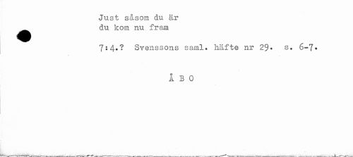 //// Just såsom du är //// ^^ du kom nu fram //// 7:4.? Svenssons saml. häfte nr 2$. s. 6-7* //// ÅBO //// t ////