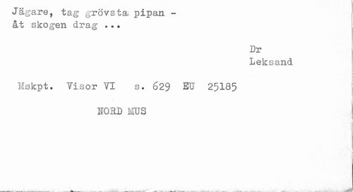 //// uagare, tag grövsta pipan - //// åt skogen drag ... //// Dr //// Leksand //// Hskpt. Visor 71 s. 629 EU 25185 //// NORD MUS ////