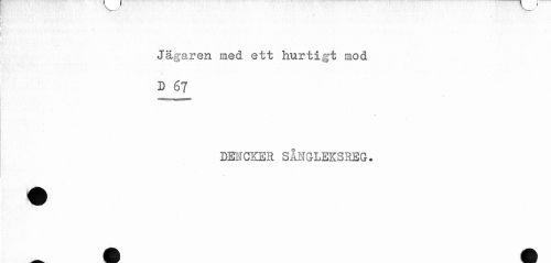 //// I //// ! //// i //// r //// Jägaren med ett hurtigt mod //// D 6? //// — //// ! //// DENCKER SÅNGLEKSREG. ////