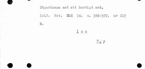 //// Jägarinnan med ett hurtigt mod, //// 1:12. Net. SLS 24- s. 386-387. nr 219 //// N. //// ÅBO ////