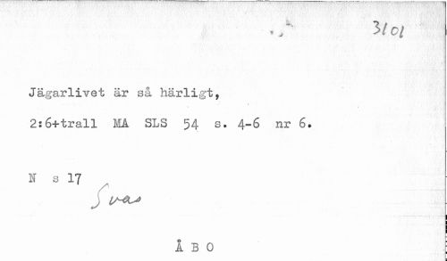 //// Jägarlivet är så härligt, //// . ...... . . //// 2:6+trall MA SLS 54 s. 4-6 nr 6. //// N s 17 //// ÅBO ; ////