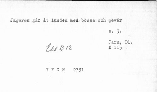 //// ) //// I //// Jägaren går åt lunden med bössa och gevär //// I //// s. 3* //// Järn, Dl. //// /a D115 //// I F G H 2731 ////