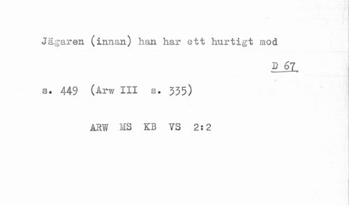 //// Jägaren (innan) han har ett hurtigt mod //// . //// * //// s. 449 (Arw III s. 335) //// ARW MS KB VS 2:2 ////