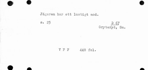 //// Jägaren har ett lustigt mod. //// s. 25 DJ>7 //// Gryteryd, Sm. //// V F F 448 fol. ////