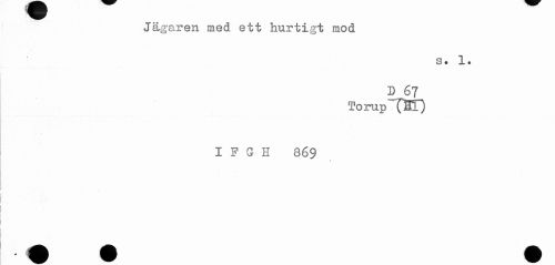//// Jägaren med ett hurtigt mod //// s. 1. //// D 67 //// Torup"(BT) //// I F G H 869 //// - //// 1 ////