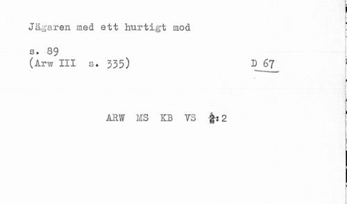 //// Jägaren med ett hurtigt mod //// - //// s. 89 i //// (Arw III s. 335) D_67 //// ? //// F //// - //// i //// [ //// -- //// ARW MS KB VS 3 :2 ^ //// < //// E ////