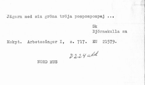 //// Jägarn med sin gröna tröja pompompompej ... //// Sk //// Björnekulla sn //// Hskpt. Arbetss&nger I, s. 717. EU 21579- //// NORD MUS ////