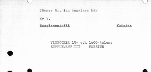 //// Jämmer är, iag ängslasz här //// Nr 1. //// TISBöCKER 15- och 1600-talens //// SUPPLEMENT III FORSIUS //// t ////