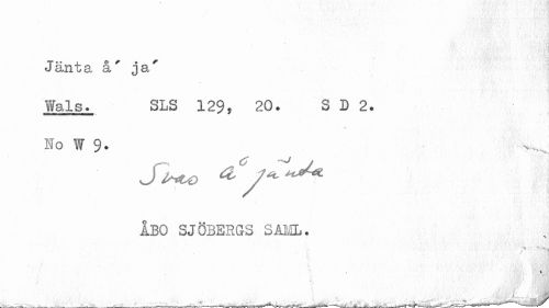 //// Jänta å' ja' //// Wals. SLS 129, 20. S D 2. //// No W 9. //// ÅBO SJÖBERGS SALIL. ////