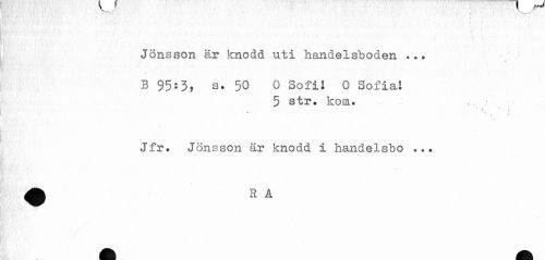 //// —- //// . . ' . * - ' ' ' '/ . * - //// ' . . ' ' . . ' //// Jönsson år knodd uti handelsboden ... //// ^ * ' ^ * ^ //// B 95:3? S. 50 o Sofi! 0 Sofia! //// 5 str. kom. //// Jfr. Jönsson är knodd i handelsbo ... //// * //// - //// nBt.'. f'i) . * //// i**, ' -;) ////