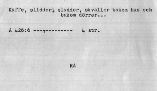 //// Kaffe, slidder^. sladder, skvaller bakom hus och //// bakom dörrar... //// A 426:6 ---7--------- 4 str. //// .- . . - < //// RA ////