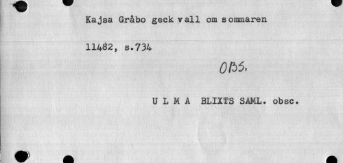 //// Kajsa Gråbo geck vall om sommaren //// 11482, s.734 //// U L M A BLIXTS SAML. obsc. ////