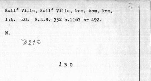 //// Kall* Ville, Kall* Ville, kom, kom, kom, //// 1:4. KO. S.L.S. 352 s.ll67 nr 492. //// N. //// . ! //// C //// ! //// < ////