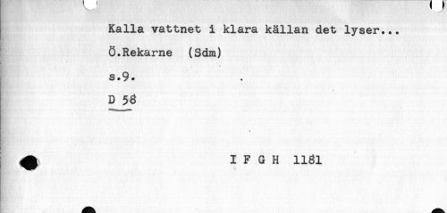 //// Kalla vattnet i klara källan det lyser... //// E' //// Ö.Rekarne (Sdia) //// s.9. //// g ' //// I I F G H llgl //// . ////