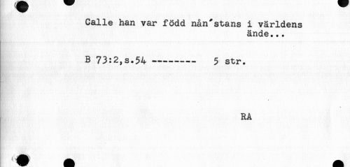 //// Calle han var född nån*stans i världens //// ände... //// B 73:2,s.54-------- 5 str. //// RA ////