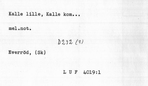 //// Kalle lille, Kalle kom... //// * //// mel.not. //// Everröd, (Sk) //// * //// L U F 4019:1 ////