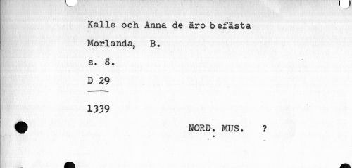 //// Kalle och Anna de äro befästa //// Morlanda, B. //// s. 8. //// D 29 //// 1339 //// * < //// # NORD. MUS. ? //// + ////
